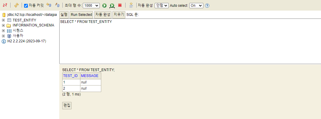 하지만 Long타입을 사용해서 id값을 설정해주면 0이 아닌 null로 값이 출력되는것을 확인할 수 있다.