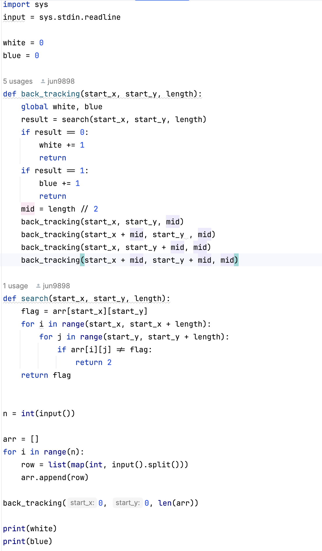 square[snake[-1][0]][snake[-1][1]] = 0