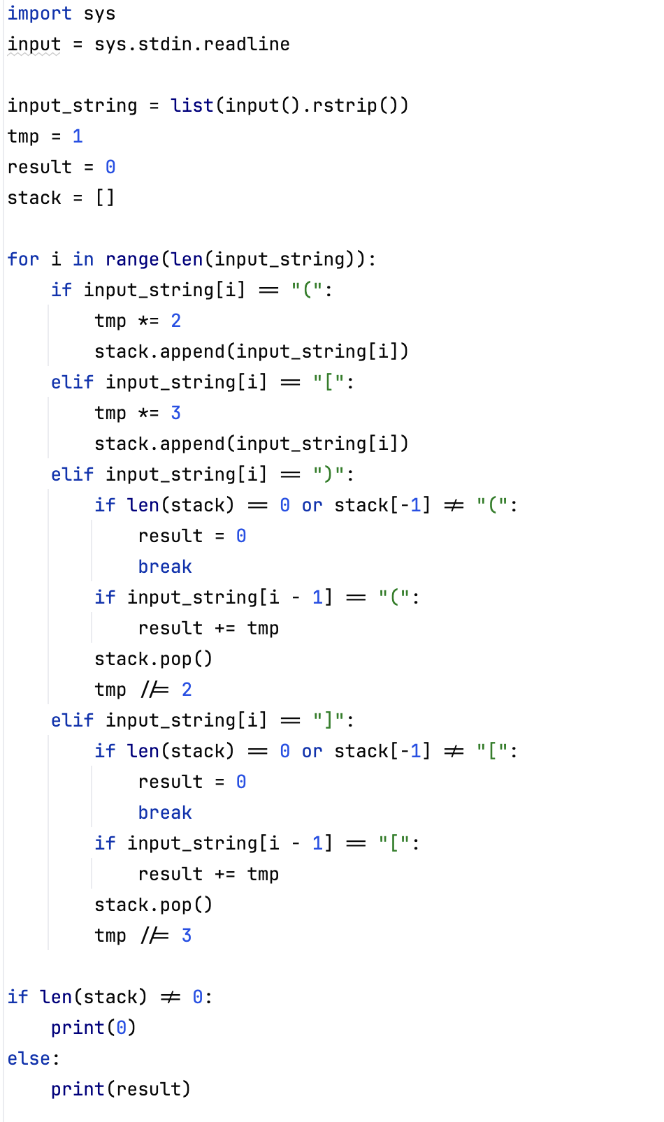 현재 값의 상태를 저장해두는 tmp와 그렇게 괄호가 닫히면 현재 값을 저장해주는 result를 선언해서 풀었다.