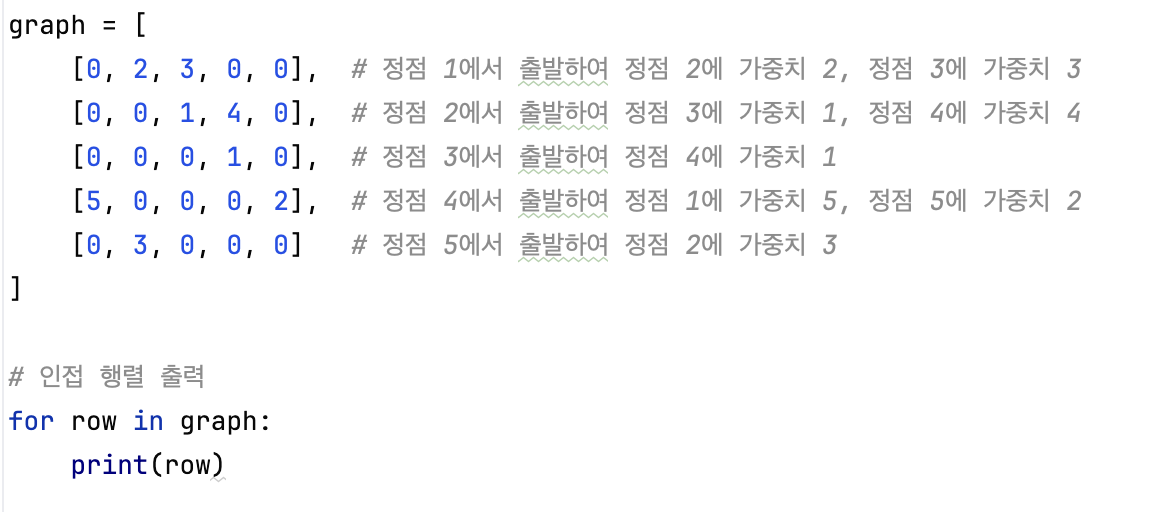 가중 그래프는 가중치를 저장하는 필드값을 따로 추가해주는 모습을 확인할 수 있다.