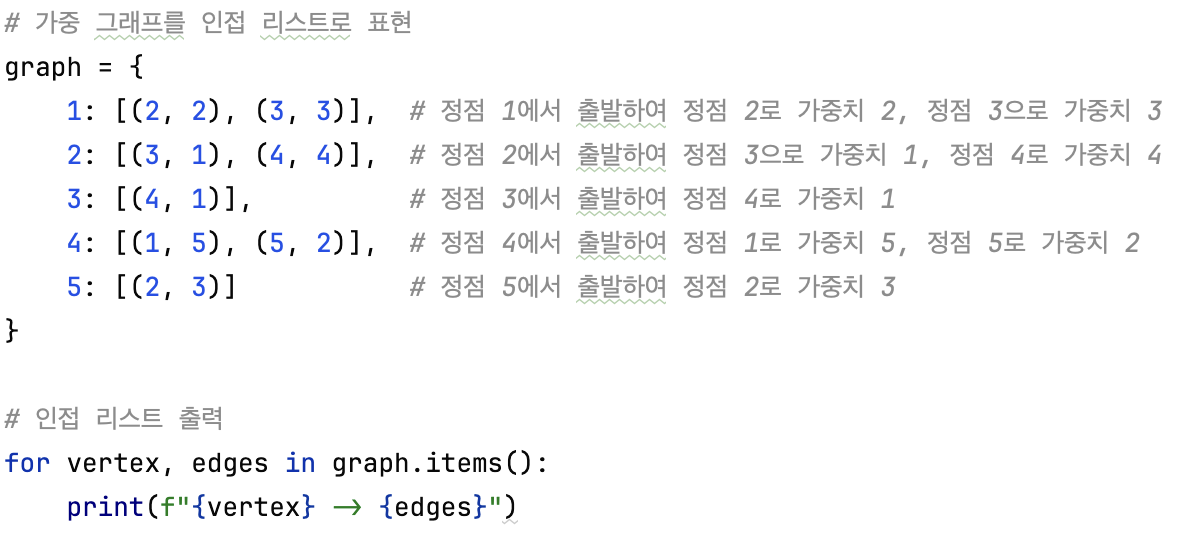 가중 그래프는 다음과 같이 표현할 수 있다.