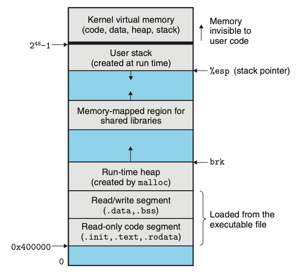 사적 주소공간 | 코드 세그먼트는 항상 주소 0x400000에서 시작한다. |