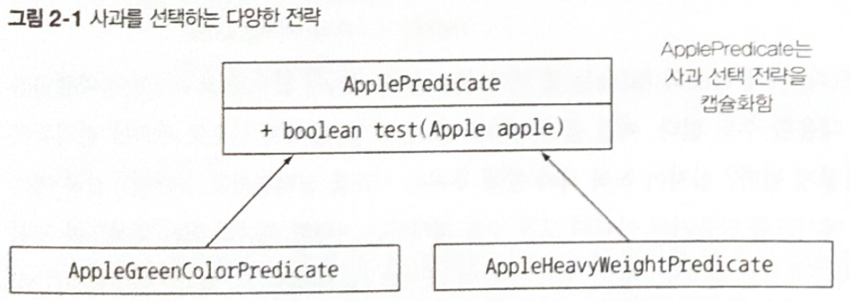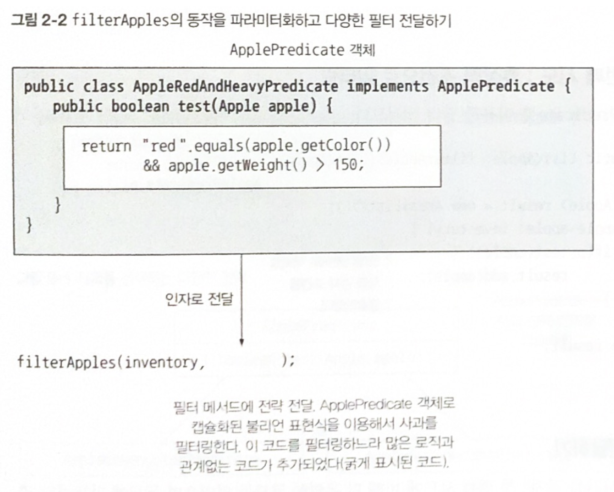 이렇게 되면 filterApples 함수를 변경하지 않고 Predicate 만 추가해주면 메서드의 동작이 결정된다.