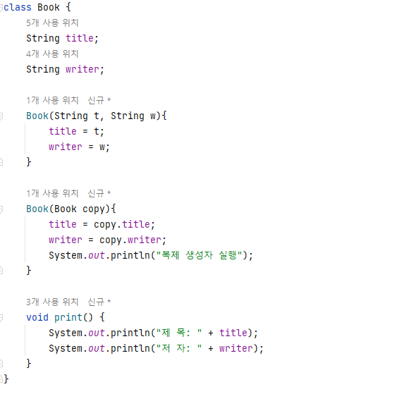 복제 생성자는 동일한 클래스의 오브젝트를 인수로 받아서 대응하는 필드에 값을 대입하는 생성자임