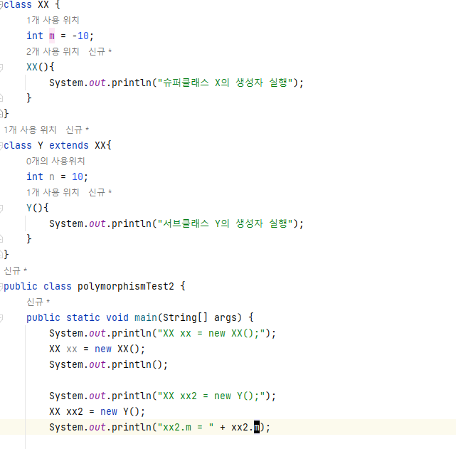 하나의 오브젝트가 어느 서브 클래스의 오브젝트이면 그 클래스의 슈퍼클래스와도 instanceof 연산을 적용했을때 true이기도 함