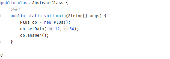 - 기존 설계된 클래스에는 없는 동작(메소드)을 하도록 메소드의 원시 형태(메소드명, 입출력형식)를 지정함(추상 메소드로 구현)