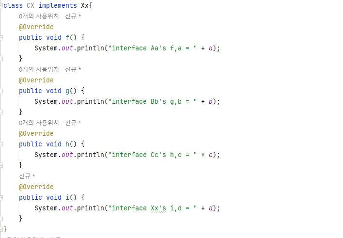 필드값과 추상 메소드를 상속한 interface Xx를 구현했다.