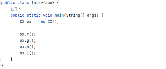 class CX로 생성한 객체 ox는 interface Xx의 값을 모두 갖게 된다.