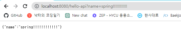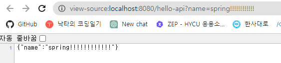 웹 브라우저 (hello-api)→ 내장 톰켓서버 → helloController →ResponseBody 확인 → 객체 return : (name:spring) → HttpMessageConverter → json 데이터 웹브라우저에 전달