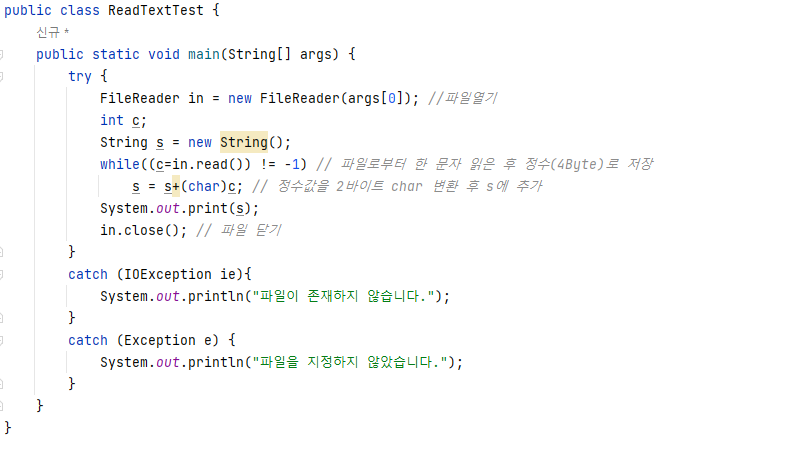 read() 메소드를 사용함, 이 메소드 앞에는 System.in 이 붙음
