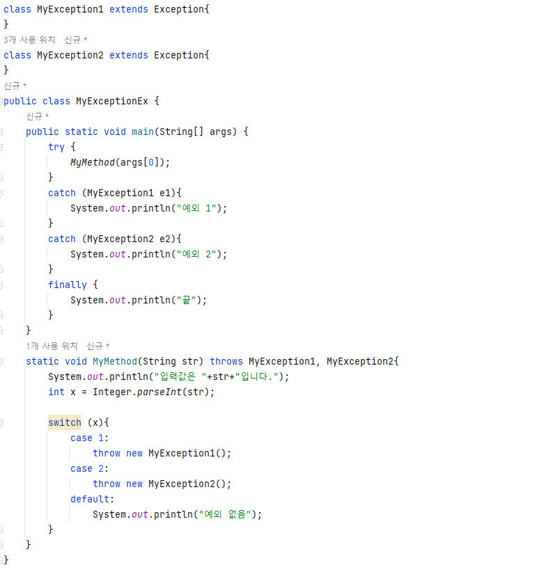 사용자가 새로운 예외 클래스를 정의하여 사용할 수 있음